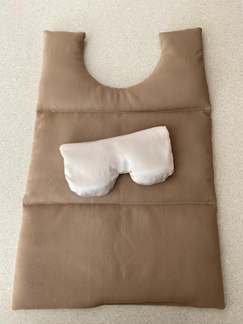 Nuestro antifaz herbal y compresa para espalda (de uso en calor) crean el complemento perfecto para terapeutas que buscan ofrecer confort, calidez y un toque premium en cada detalle.